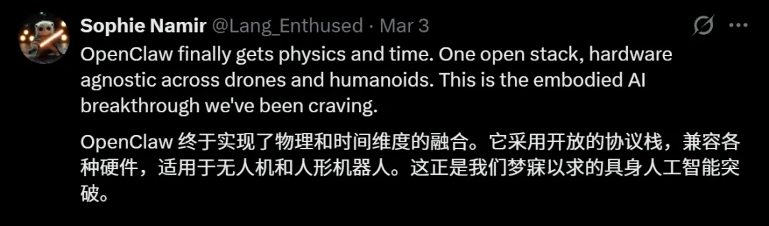 这宣告着具身智能的里程碑式突破:OpenClaw正式掌握了物理空间和时间感知能力。
