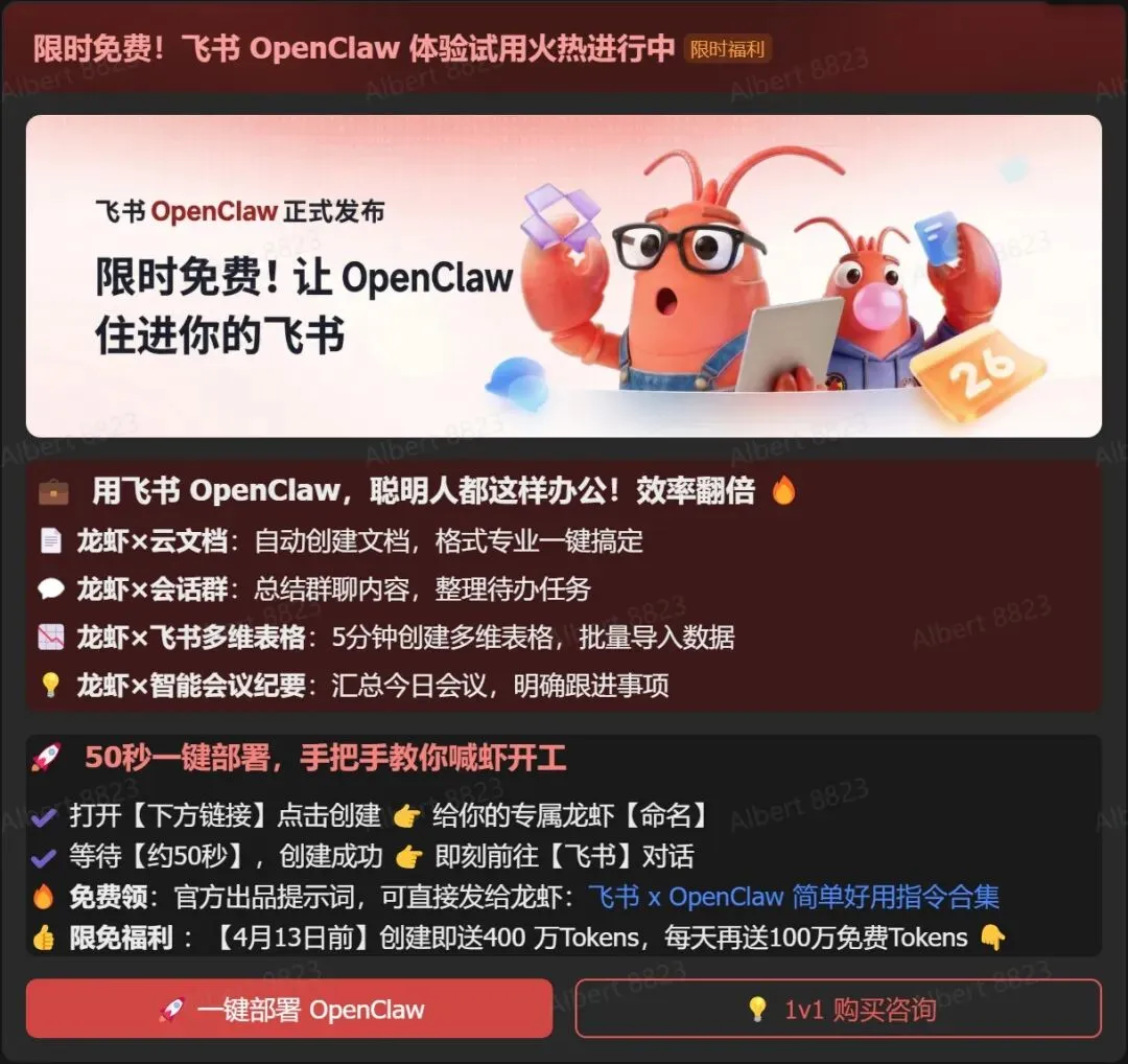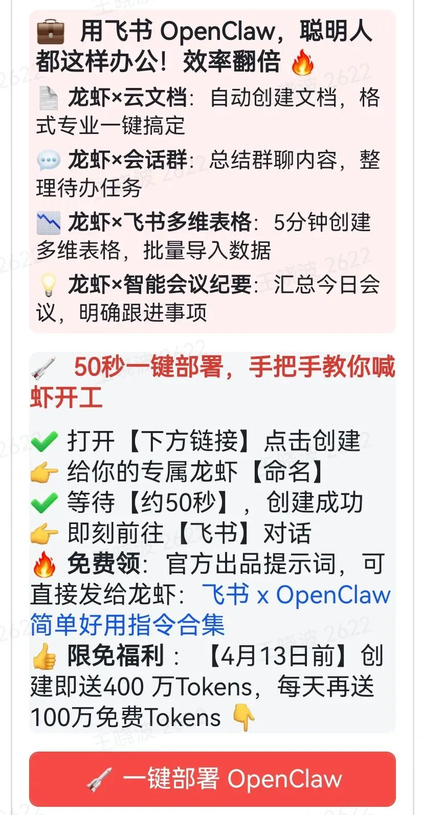 📌 入口:飞书 OpenClaw 限时免费活动火热进行中,点击即可部署!