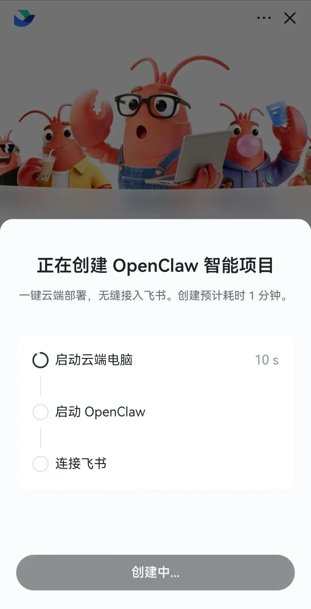 而飞书 OpenClaw 做到了真正的一键云端部署: