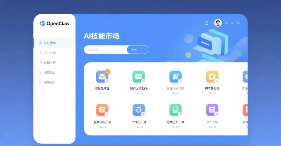 现在就打开“小龙虾”的技能市场(或类似平台)看看。你不用自己开发,但你要去看看: