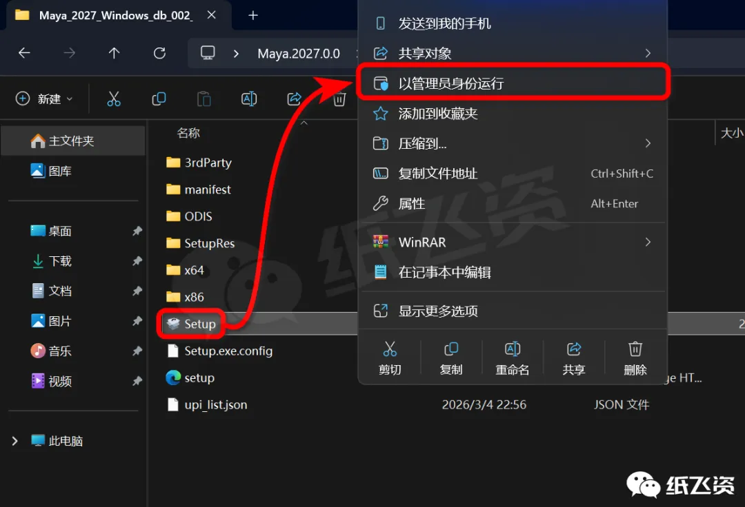 4.右击[Setup]选择[以管理员身份运行]