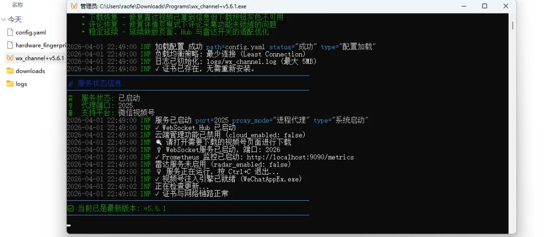 视频号没有公开地址,必须用工具抓取,wx_channel v5.6.1是目前最稳的。