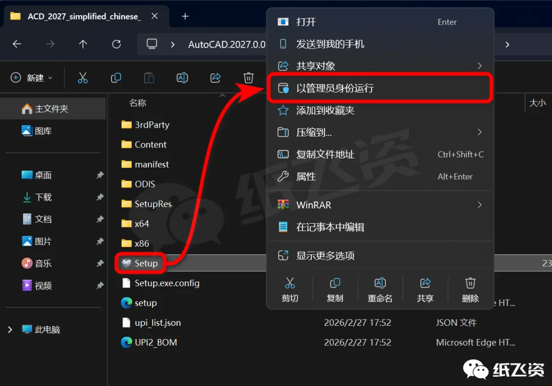 4.右击[Setup]选择[以管理员身份运行]