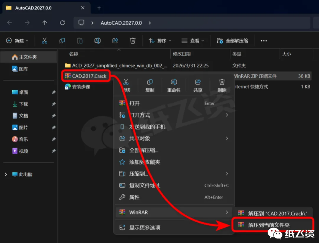 9.右击[Crack]选择[解压到当前文件夹]
