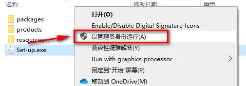 3.选中Set-up,鼠标右键选择“以管理员身份运行”