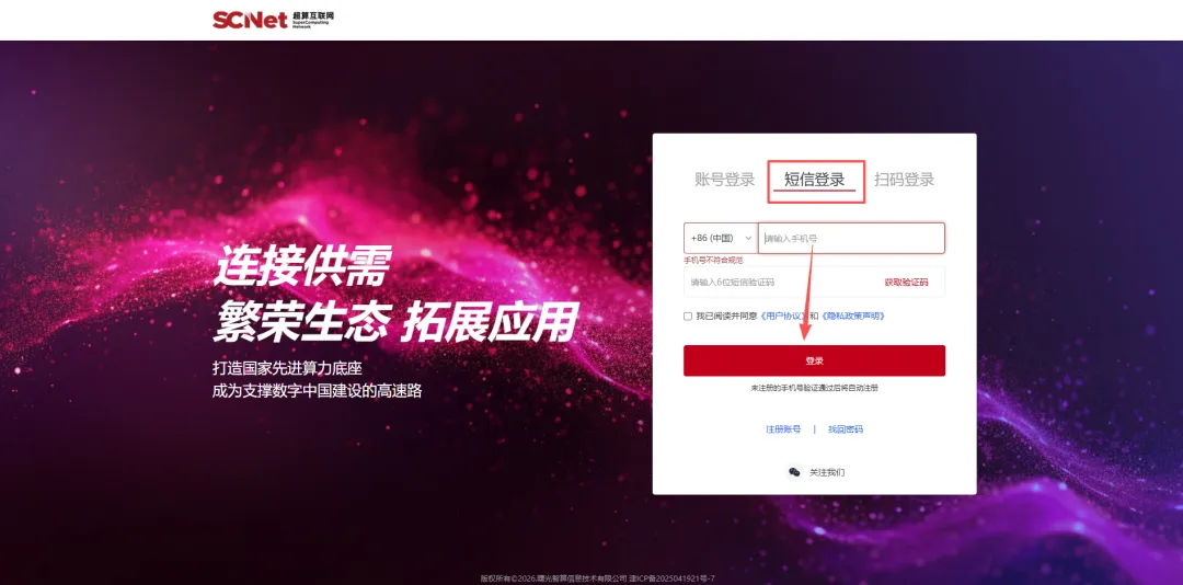https://www.scnet.cn/ui/llm/,进入登录页面。