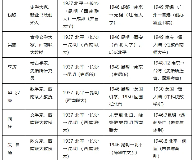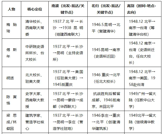 书中囊括了20世纪人文社科领域几乎所有大师级人物,以下是《南渡北归》全核心人物脉络总表: