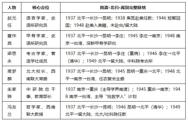 第一组:迁徙主线核心人物(南渡-北归-离别完整轨迹)