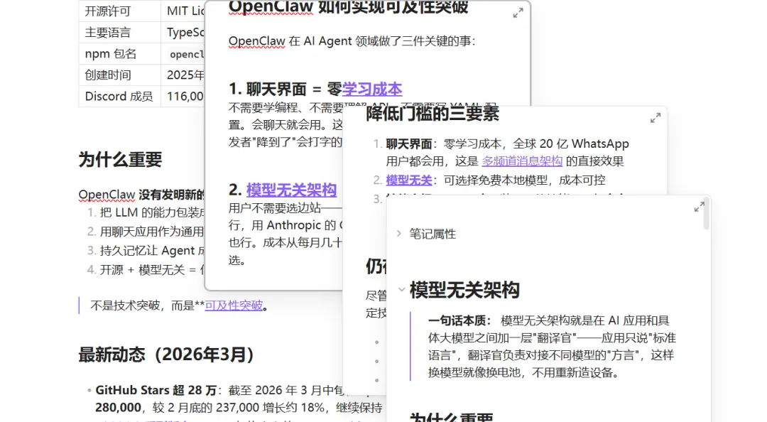 若是接入openclaw,这等于是给你配了一个 24 小时在线的知识管理助手。
