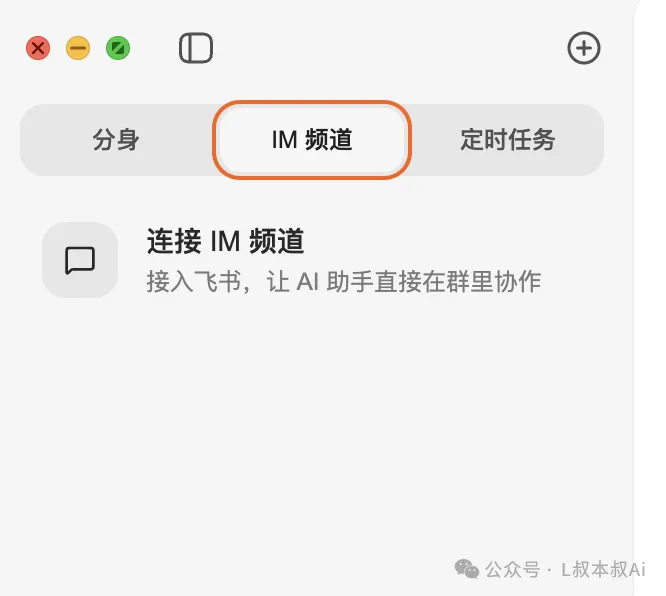当你部署完模型之后,下一步,就可以直接选择左上角的「IM频道」,开始接入「飞书」