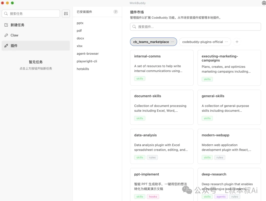 而技能安装和部署也很方便,你可以直接点击左边的插件,在里面选择安装部署技能。