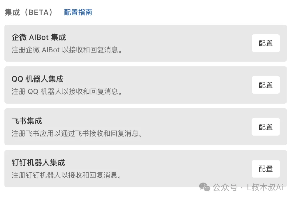 目前只支持飞书快速接入,但是我想不远的将来,无论是企业微信,钉钉还是QQ,应该都会加入这个功能。