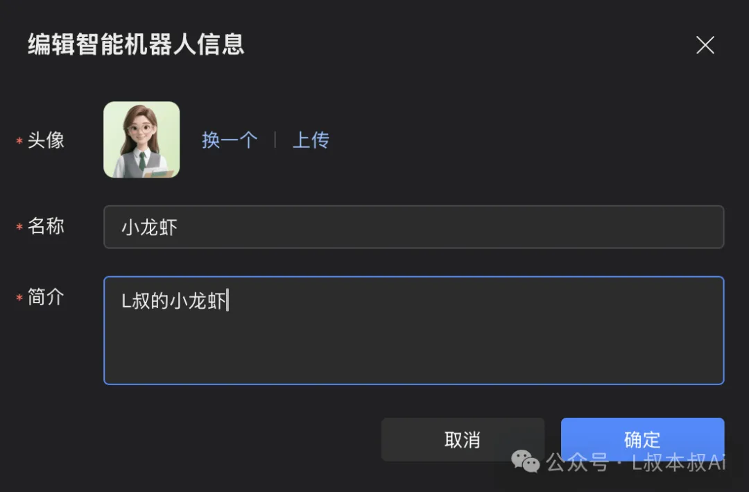 最后点击保存,配置一个 OpenClaw 的名称和简介就可以了