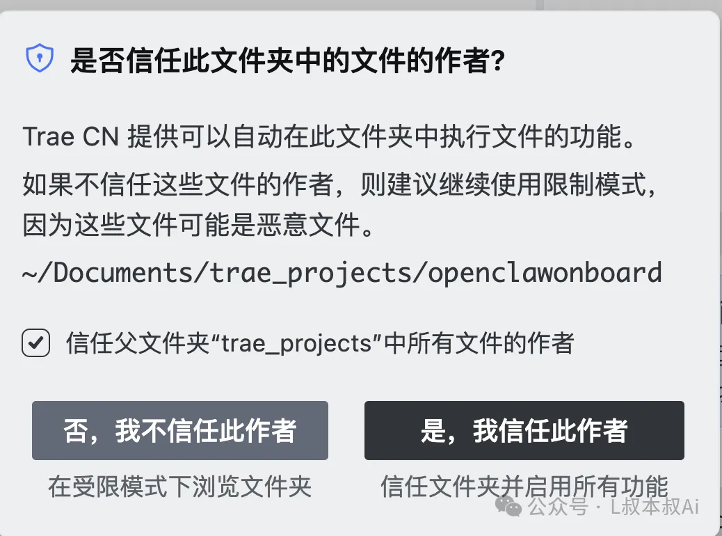 接着会弹出很多权限警告,你可以一路点击「是,我信任此作者」即可