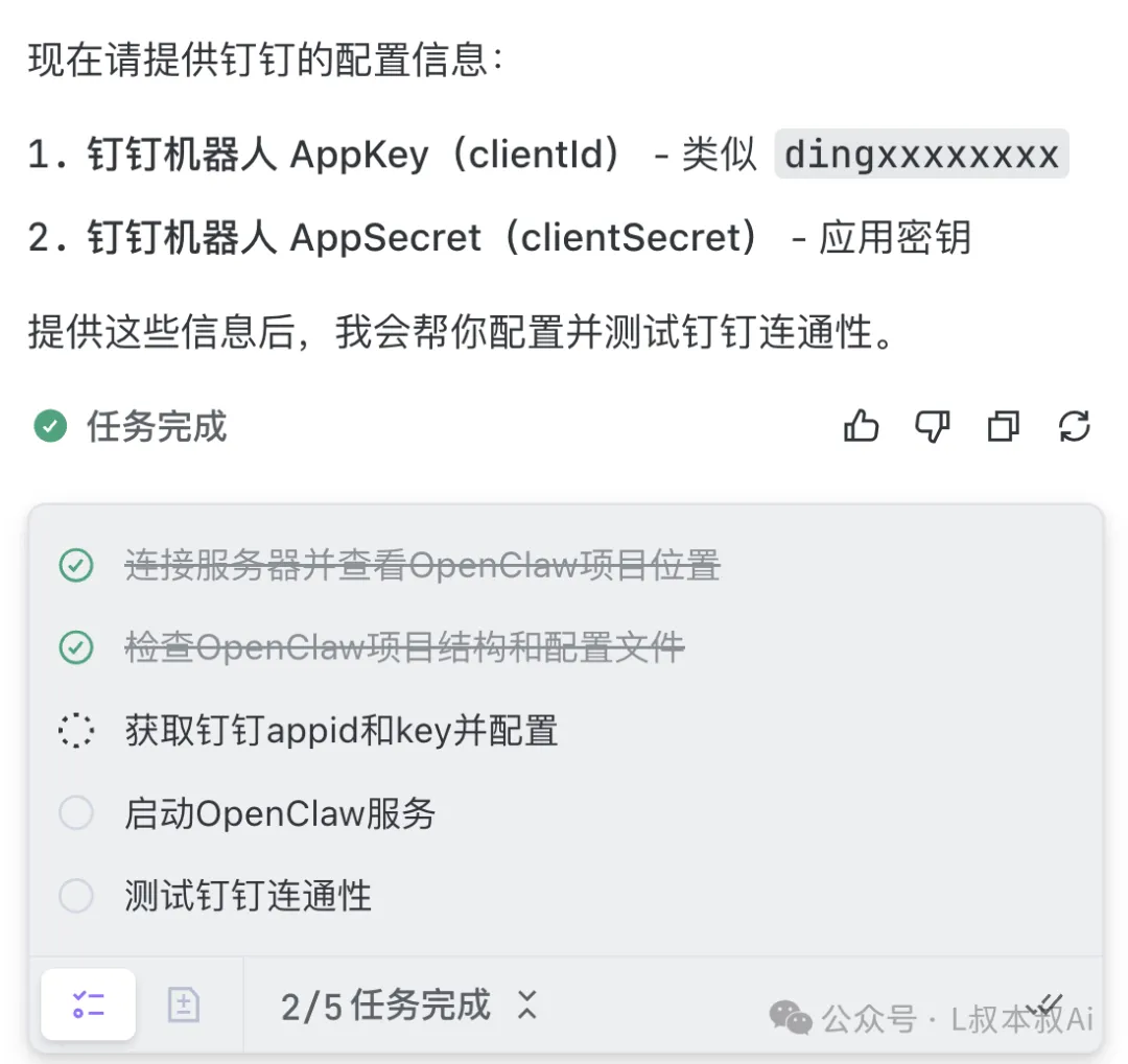 等待一会儿,Trae会需要跑到需要你提供钉钉的appid和key之后,