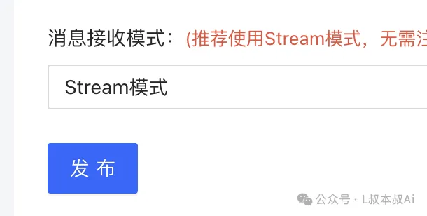 保持消息接受模式为Stram模式即可,不要动这个!最后点击发布