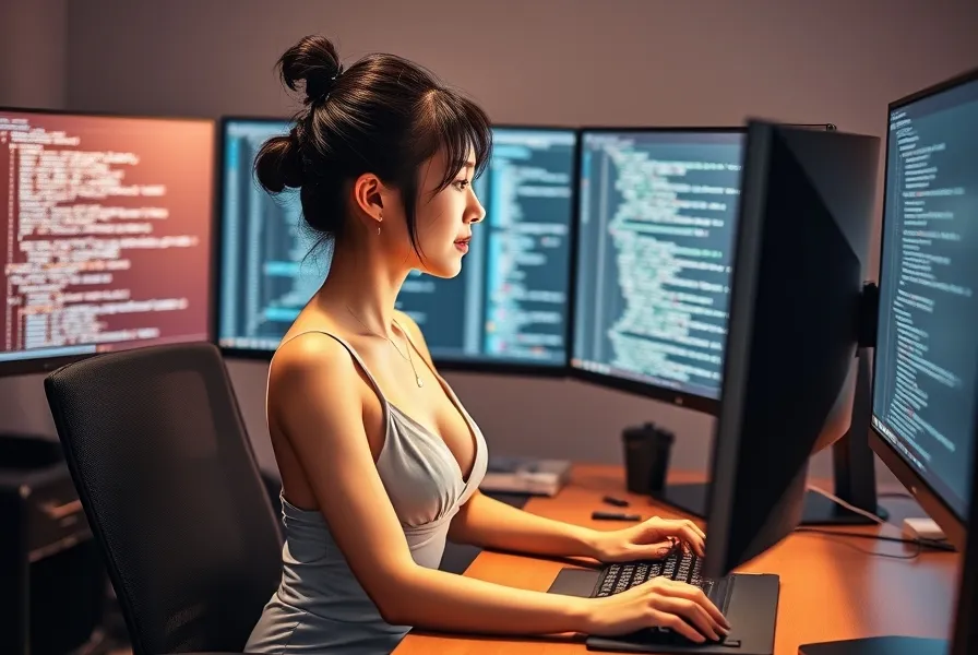图:开发者使用集成了QQ AI助手的工作站进行编程