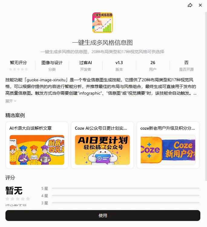 该技能已经上线coze商店,目前免费使用,好用的话记得好评哦