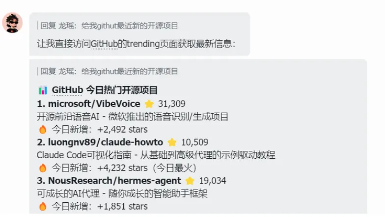 我就问指挥官:"GitHub上有什么新的资讯?"