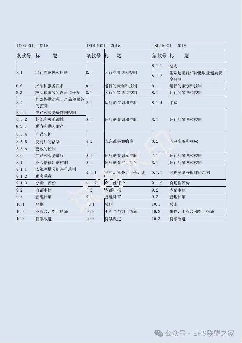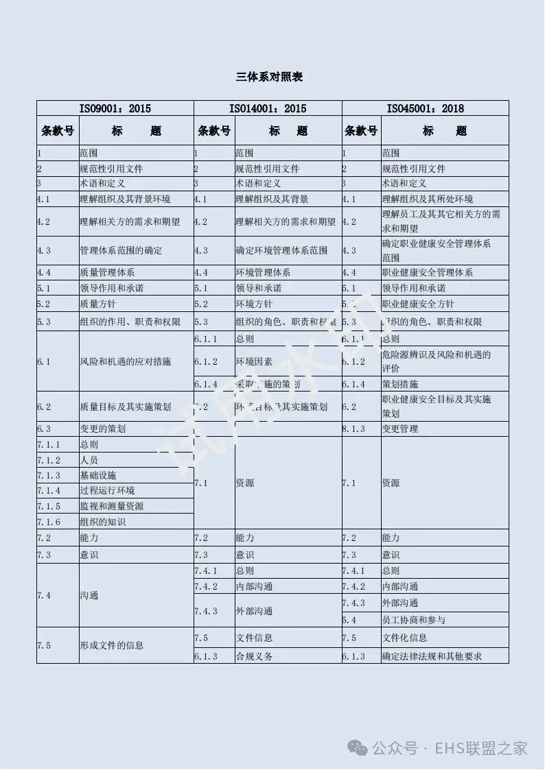 四、三体系标准对照表