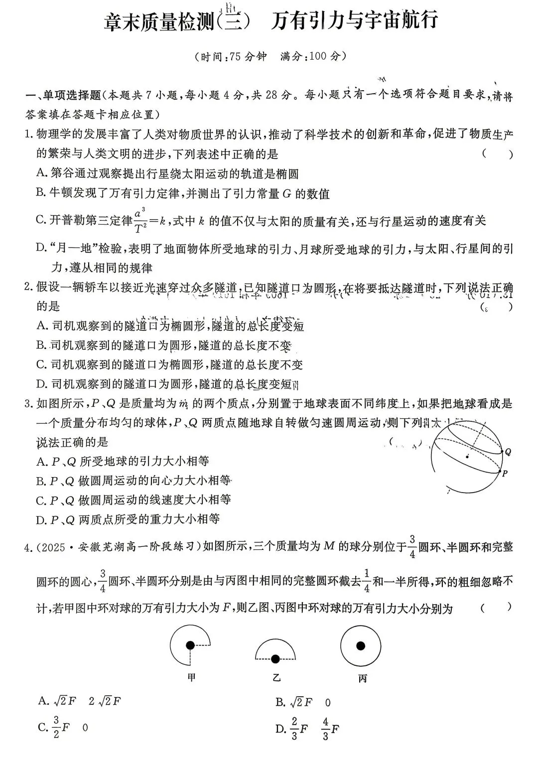 2025-2026学年高一物理必修二第七章《万有引力与宇宙航行》章末检测.pdf