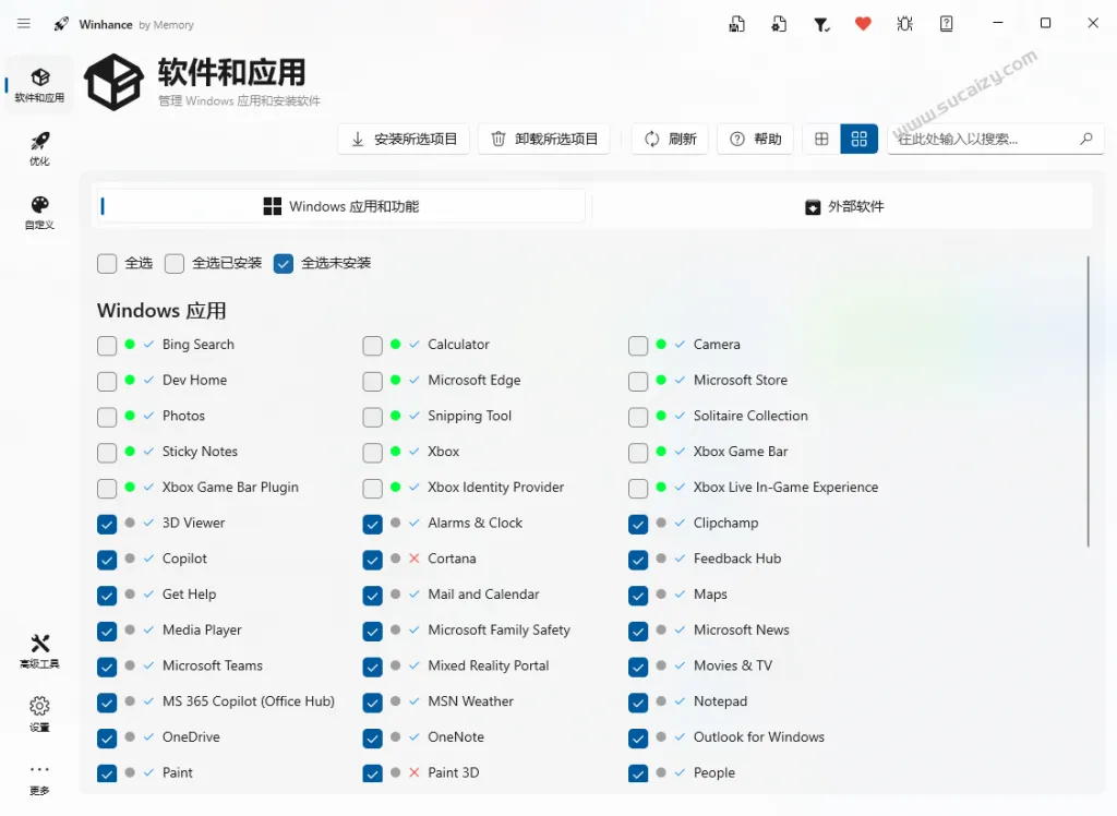 ✅ 一站式软件管理:它集成了WinGet包管理器,支持批量安装常用软件,浏览器、办公工具、影音软件这些,一键就能全装好,刚装完系统不用一个个去官网找安装包,省超多时间;同时也能常规管理第三方应用,安装卸载都能搞定,卸载还不会留残留文件。