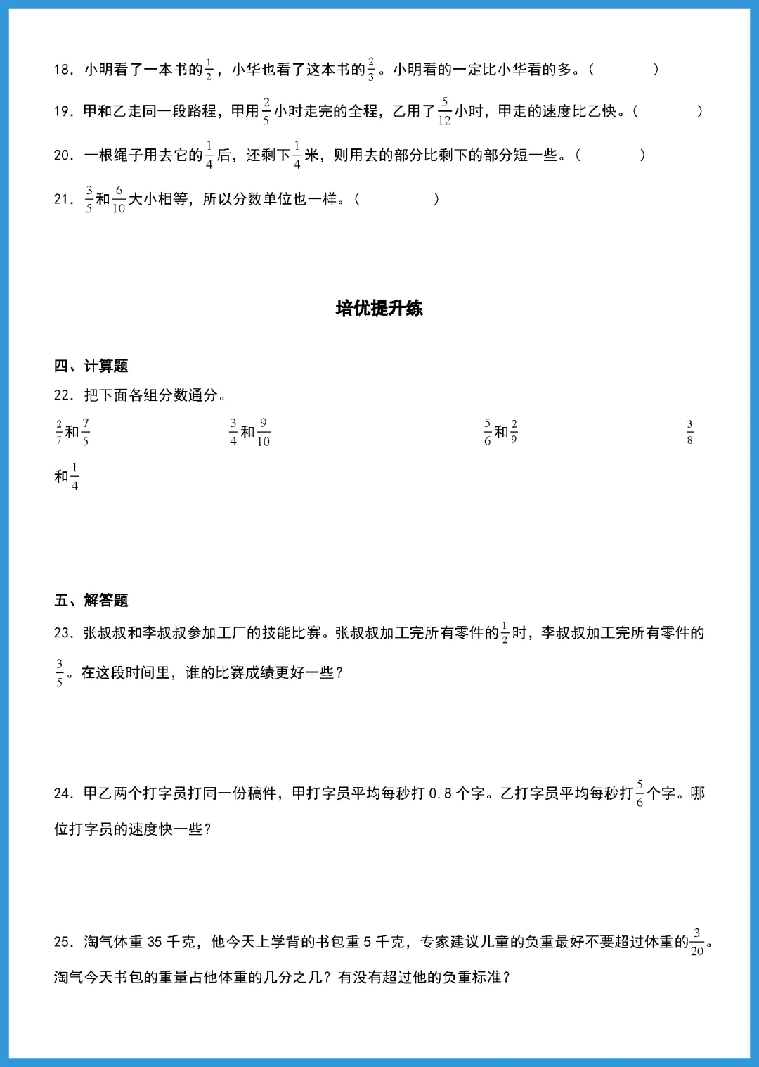 各位家长好!今天分享一份 2024 年人教版五年级下册数学《通分》分层作业,共 15 页精编内容。这份资料紧扣教材重点,科学划分基础、提升与拓展三个层级,既能帮孩子扎实掌握通分技巧,又能针对性突破异分母分数比较大小的难点。通过循序渐进的练习,有效巩固课堂知识,提升解题自信。资源已整理完毕,需要的家长抓紧打印给孩子练一练吧,让孩子的数学成绩更上一层楼!