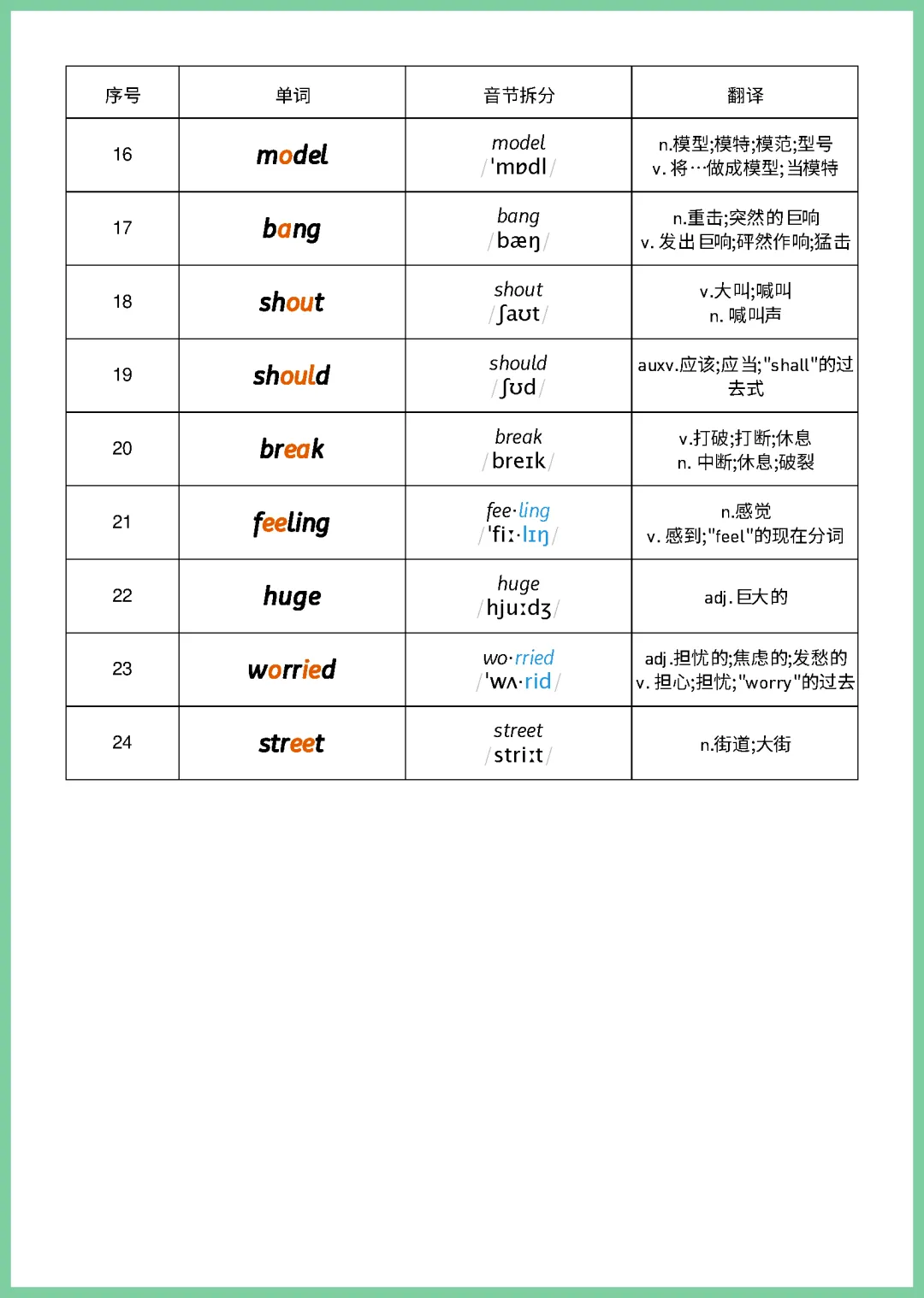 各位家长好!今天分享一份 2024 年外研版四年级下册英语专项资料:Unit 2 音节划分单词背诵默写,共 2 页。这份练习聚焦本单元核心词汇,通过科学的音节拆解法,帮孩子轻松掌握长难词拼读规律,有效解决记不住、易混淆的痛点。每天花十分钟练一练,既能夯实基础,又能提升拼写自信,让背单词不再枯燥。资源已整理好,需要的家长抓紧打印给孩子练一练吧,趁热打铁,进步看得见!