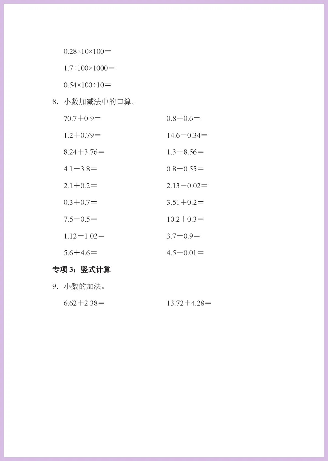青岛版六年级下册数学家长请注意!这份 2023 年专用的《题型突破卷 3:计算题(一)》来啦,全套共 7 页精编习题。资料紧扣教材重点,涵盖分数、百分数及混合运算等核心考点,专为攻克计算失分难题设计。通过针对性强化训练,能有效提升孩子的运算速度与准确率,帮孩子夯实基础、建立自信。计算能力是拿高分的关键,需要的家长抓紧打印给孩子练一练吧,让娃在考试中计算不丢分!