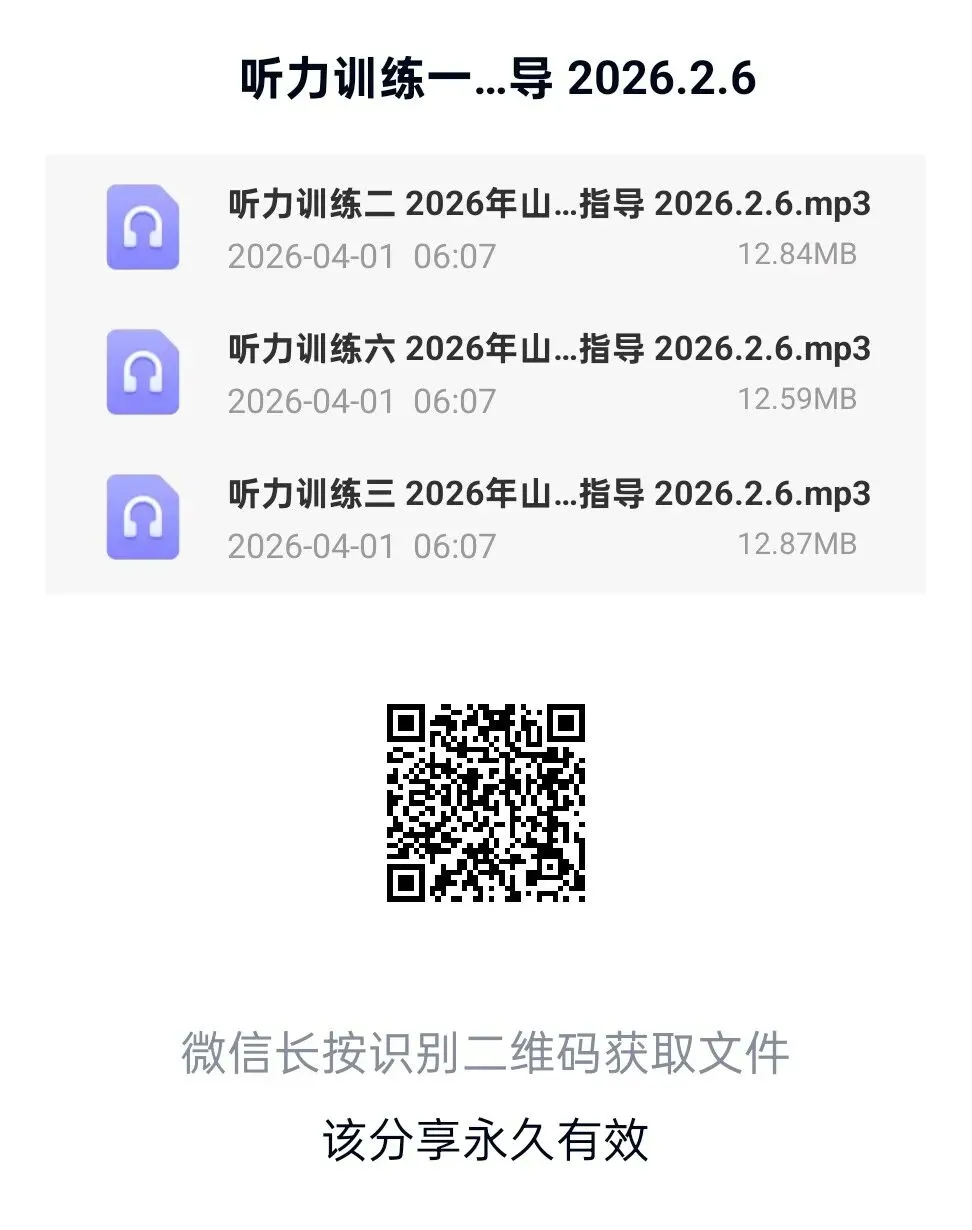 【可下载】听力训练一到六 2026年山西省中考指导 2026.2.6通过网盘分享的文件:听力训练一到六 2026年山西省中考指导 2026.2.6链接: https://pan.baidu.com/s/1mnv38EXhk_5mfA6bufnlKg?pwd=2222 提取码: 2222 --来自百度网盘超级会员v1的分享【最新】八下新导学听力 Units 1-4+阶段自我检测一 2026.3.13七下新+八下新全册课件,长按识别二维码,保存到自己的百度网盘,下载就可以了2026.3.12【可下载】七下新Units 1-8课文听力+单词 2026.3.11【可下载】八下新Units 1-8 课文及单词音频2026.3.11百度网盘免费送500G空间【必须进群才可以】抽年卡、季卡、月卡等,来50位朋友我也冲一下前三名年卡,长按识别二维码2026.3.13八年级下册英语书2023.3.11(根据2022年版课程标准修订)义务教育教科书·英语人教版.pdf七年级下册英语书(2026年春修订)2026.3.11(根据2022年版课程标准修订)义务教育教科书 英语人教版.pdf 个别有误2026.3.221600词·人教版中考英语复习核心词汇·汉英·英汉·2022课标新增,红色标注2025.12.18中考词汇通,我的第一个英语单词学习网站,耶,成功了,添加更多的单词就可以在总复习中使用了2026.1.29 已关注 关注 重播 分享 赞 视频详情 义务教育英语课程标准日常修订版(2022年版2025年修订)【匠邦AI】这个教师全能AI的好帮手,教学备案,PPT课件,出题组卷,作业设计批改,公开课,课题论文指导,考试学情分析等 已关注 关注 重播 分享 赞 视频详情