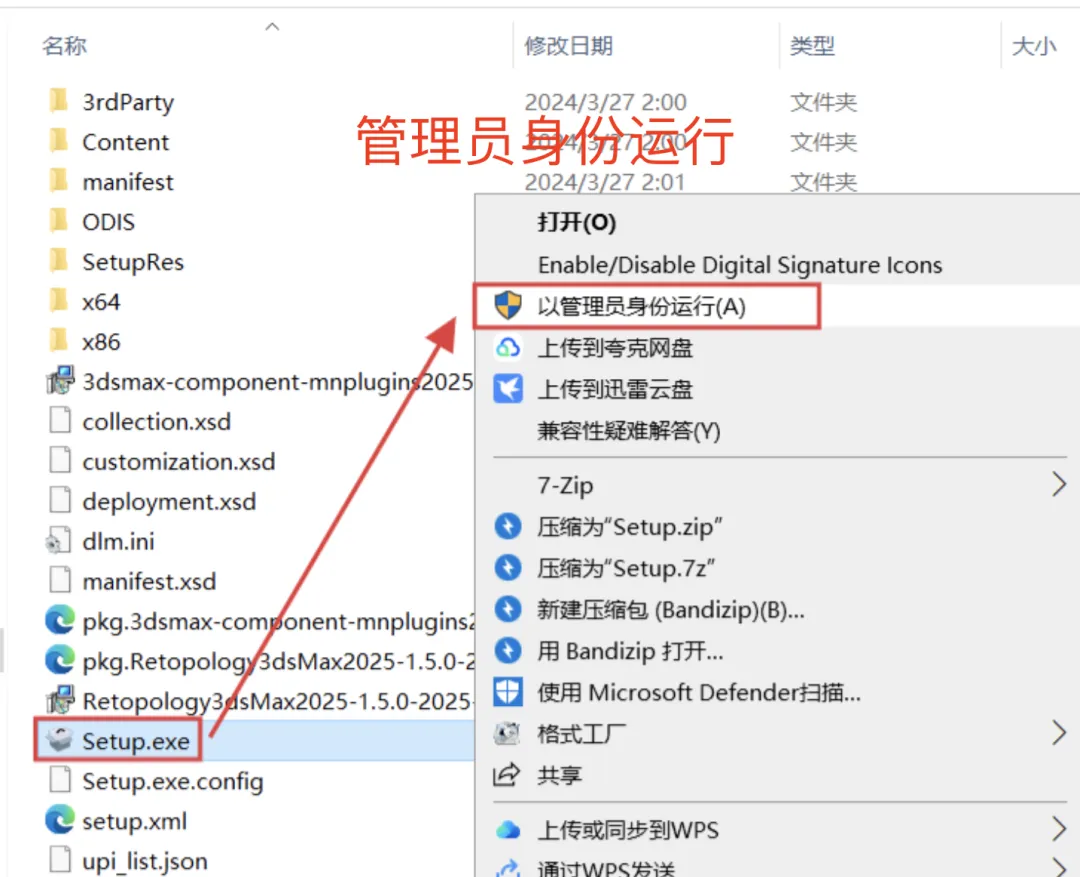 进入解压后的文件夹,双击打开文件夹:Setup。找到并右键点击程序:Setup.exe,选择:以管理员身份运行。