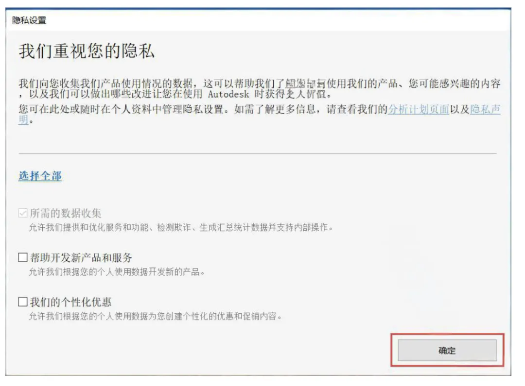 首次启动时,可能会弹出隐私设置和颜色管理变更的提示,根据您的偏好进行选择或直接点击:确定、继续即可。