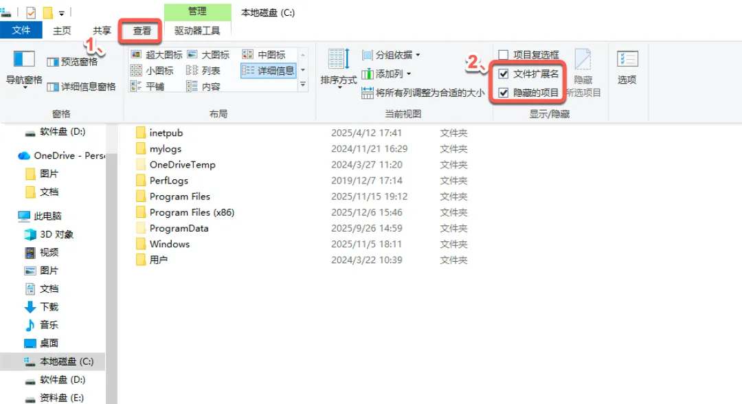 先把电脑设置一下,点击:查看,勾选:隐藏的项目和文件扩展名。