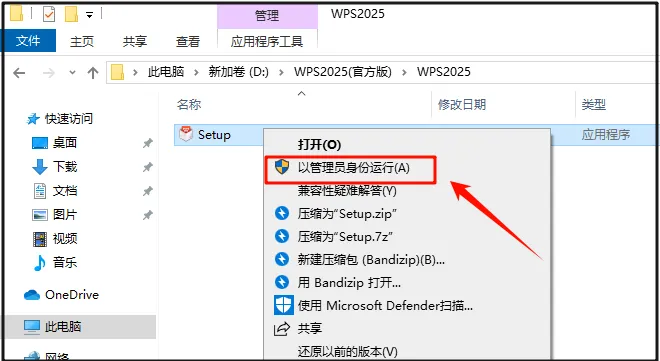 第三步:打开解压后的文件夹,选中【setup】安装程序,右击【以管理员身份运行】。
