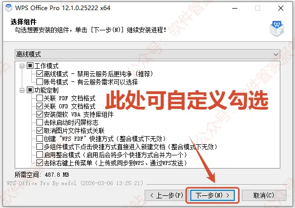 第五步:此处可自定义勾选,建议默认安装,然后点【下一步】。