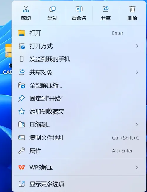 2.1,鼠标右击【浩辰CAD2026】压缩包(Win11系统需先点击“显示更多选项”)选择【全部解压缩】。如下图: