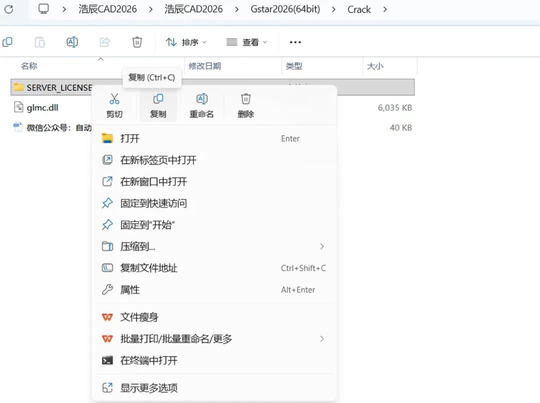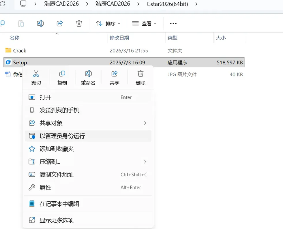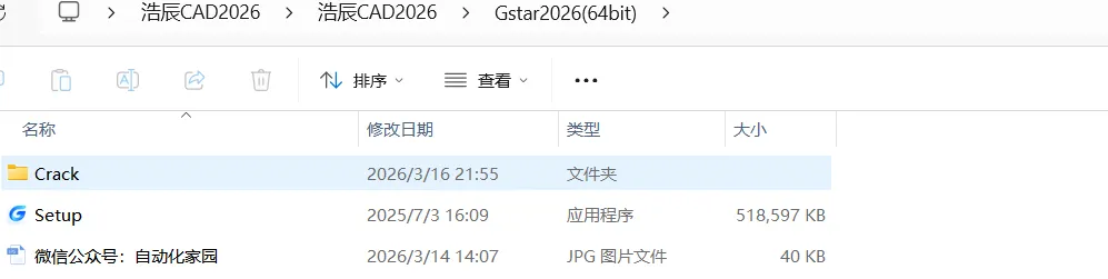 2.17,打开解压后的文件夹,双击打开【浩辰CAD2026】->【浩辰CAD2026】->【Gstar2026(64bit)】->【Crack】文件夹。