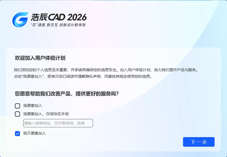 2.9,选择【我不愿意加入】,点击【下一步】。