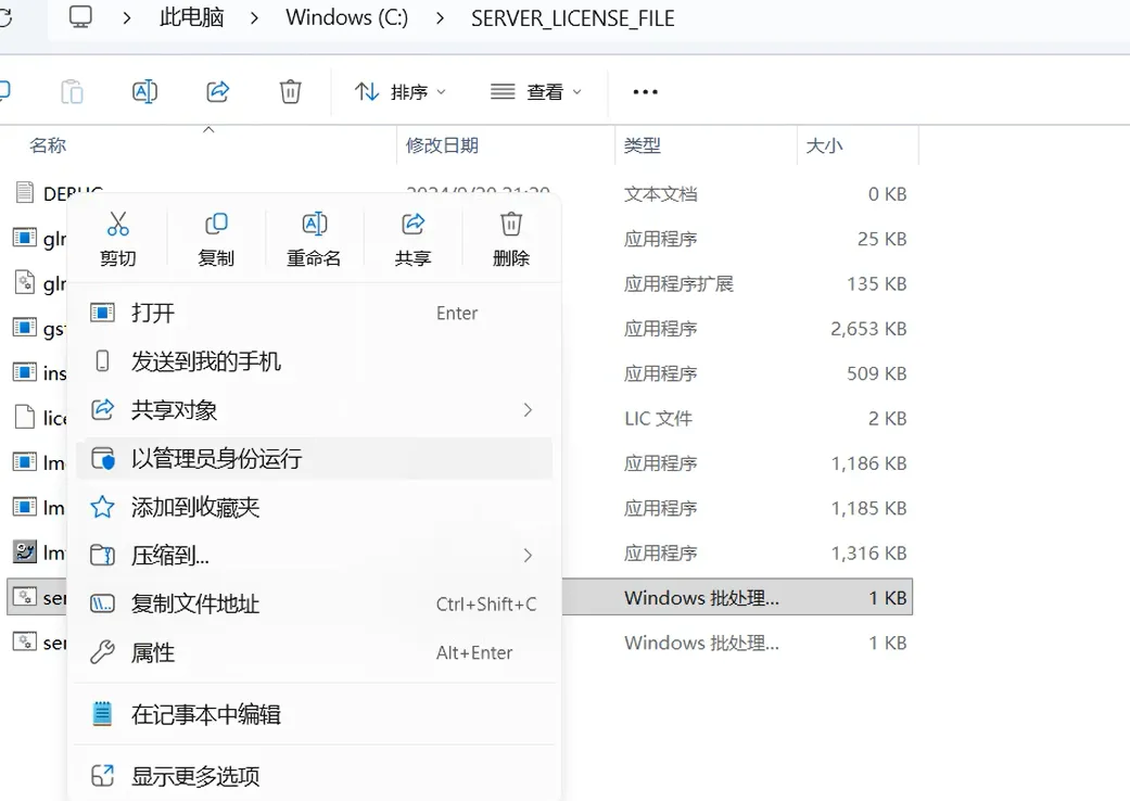 2.13,选中【SERVER_LICENSE_FILE】,右键点击【复制】。