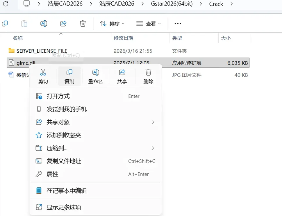 2.18,选中【glmc.dll】,右键点击【复制】。