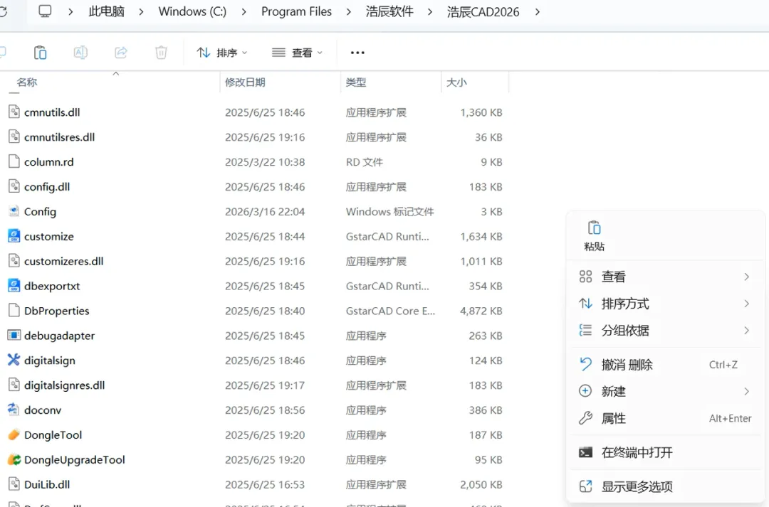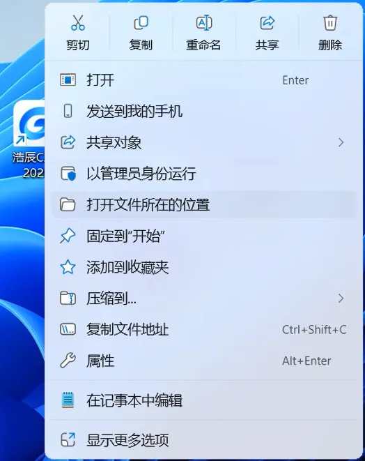 2.19,鼠标右击桌面【浩辰CAD 2026】->【打开文件所在的位置】。