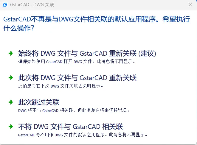 2.26,选择【始终将DWG文件与GstarCAD重新关联】。