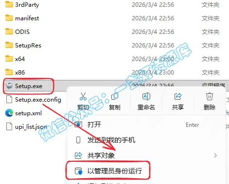 2.打开刚刚解压的文件夹,打开【Setup】文件夹,鼠标右键点击【Setup.exe】选择【以管理员身份运行】