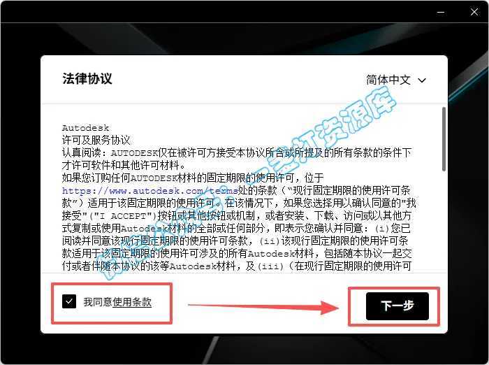 3.勾选【我同意...】,点击【下一步】