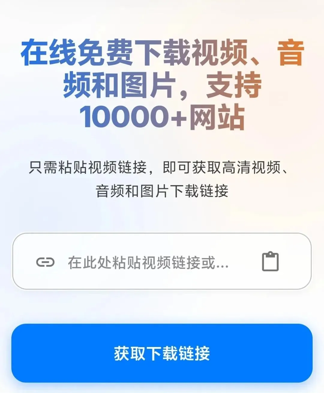 这个网站专门帮你从各个平台获取视频、图片和音频的下载地址,你从任何平台复制链接,粘贴进去,它就能解析出下载地址。