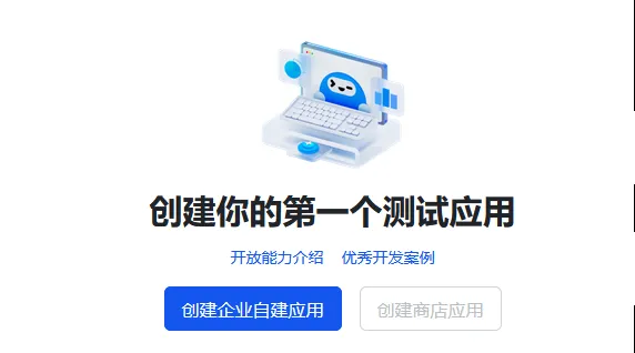 点击右上角的开发者后台,扫码登录,点击创建企业自建应用,输入应用名称与描述并创建。