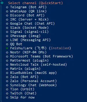 ● Feishu/Lark (飞书) (installed)