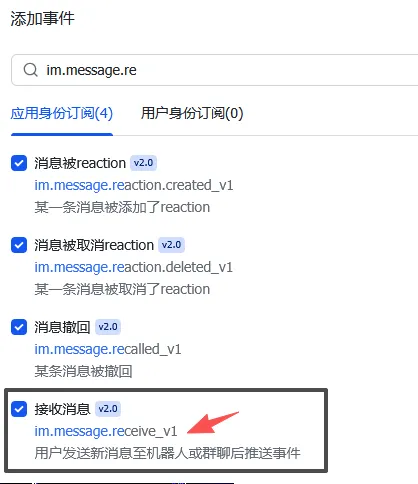 添加事件:im.message.receive_v1