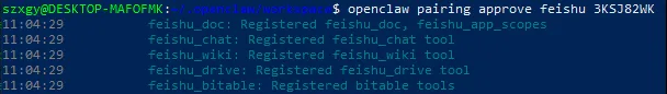 openclaw pairing approve feishu <配对码>