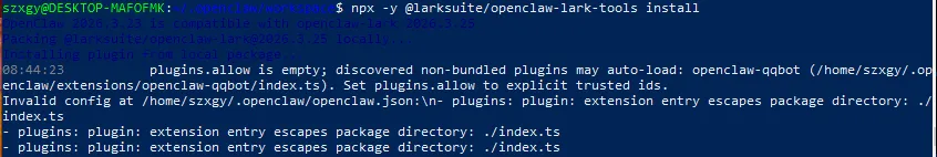 npx -y @larksuite/openclaw-lark-tools install